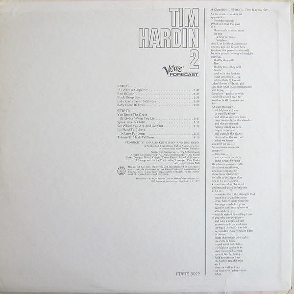 Tim Hardin – Tim Hardin 2 (Folk, Vinyl LP) FTS‑3022 Label: Verve Forecast Format: Vinyl LP, Stereo Country: US Genre: Folk Year: 1967