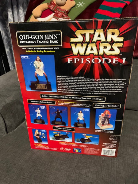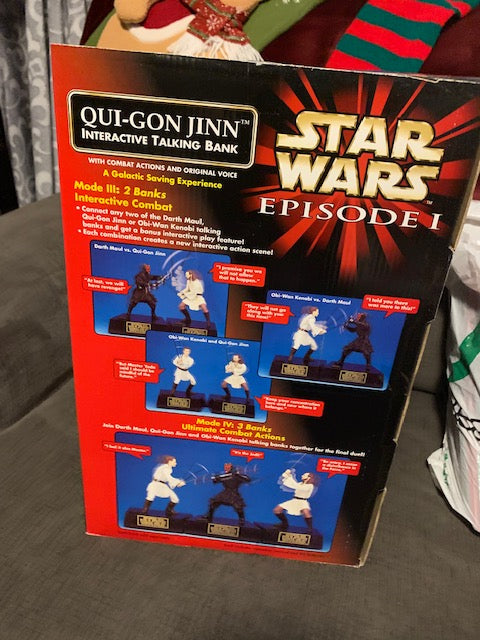 Vintage Star Wars Phantom Menace Qui-Gon Interactive Talking Coin Bank NIB