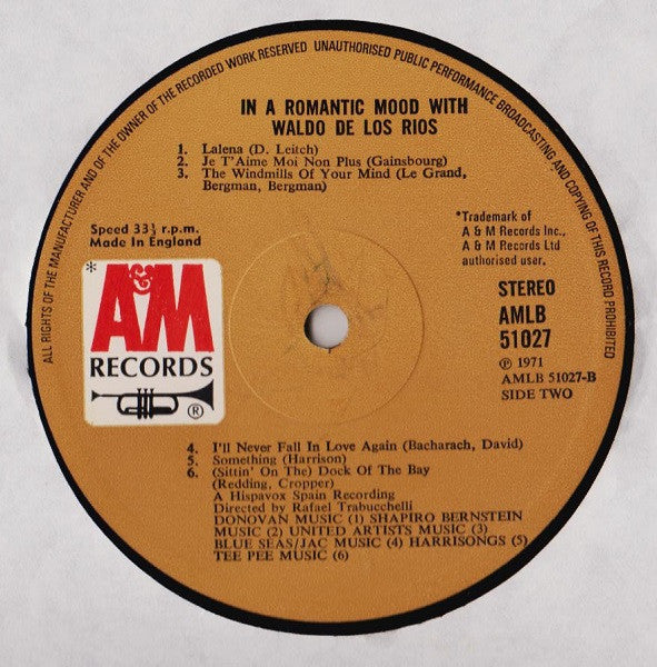 Waldo De Los Rios – In A Romantic Mood With Waldo De Los Rios -1971-Jazz, Pop Easy Listening, Romantic (UK vinyl)